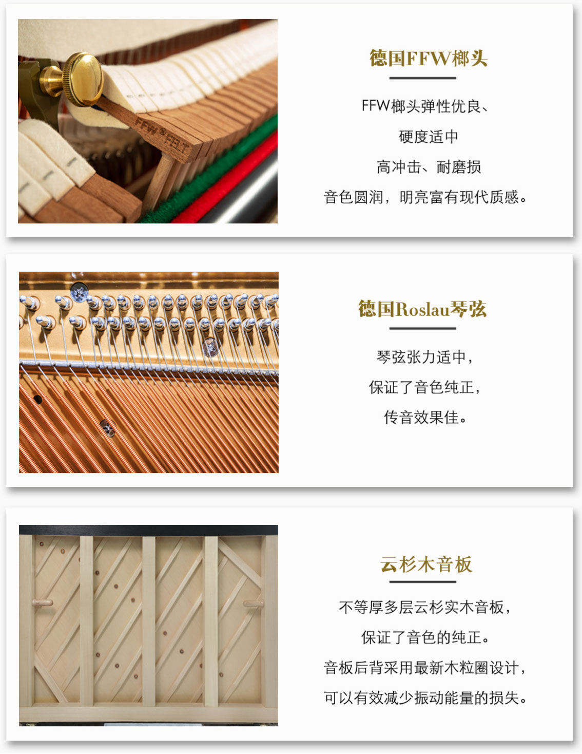 ◆ 琴弦采用德國進口的Röslau(羅斯勞)專業(yè)制琴鋼絲